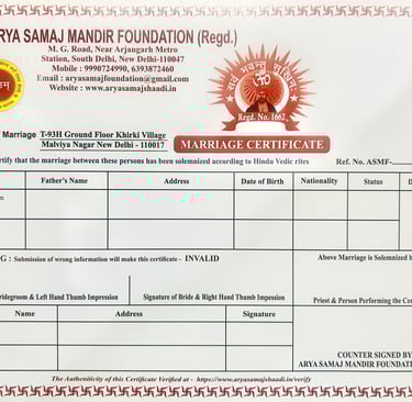 Our Marriage Certificate Service in Delhi