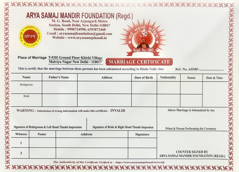 We make the process of applying for a Marriage Certificate in Delhi simple, quick, and transparent. Our team assists you with: